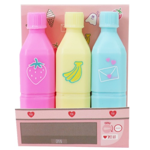 ペットボトル型の蛍光ミニマーカー3本セットおもしろ文房具 女の子向け 小学生 中学生 おしゃれ毎日が楽しくなるキュートなステーショナリーシリーズこちらはペットボトル型のかわいいミニ蛍光マーカー3本セット連結も出来てペンケースの中にも入れやすい可愛い文房具いろいろあるのでお気に入りで揃えてください。